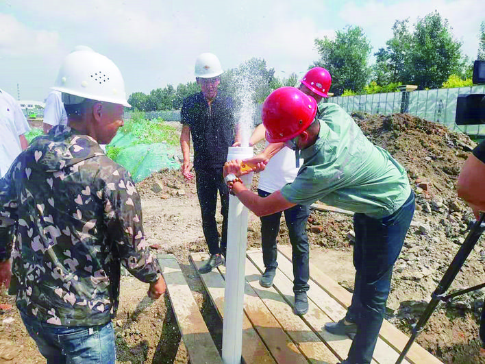 經(jīng)開(kāi)區(qū)觀天下二期項(xiàng)目用水工程從報(bào)裝到通水僅用了40分鐘。圖為工作人員打開(kāi)水管閥門(mén)?!绑@喜!”20日, 上午,在經(jīng)開(kāi)區(qū)觀天下二期項(xiàng)目的工地.上,吉林富騰集團(tuán)房地產(chǎn)開(kāi)發(fā)有限責(zé)任公司總經(jīng)理助理陳中秋看著水管里冒出的水流,高興得合不攏嘴。